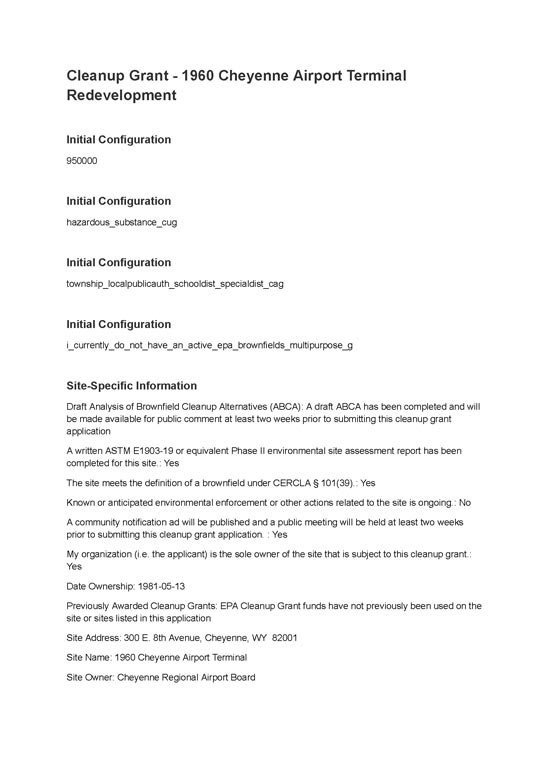 Cheyenne Arts & Aviation Center - 1960's Terminal (EPA) Brownfield Clean-up Grant