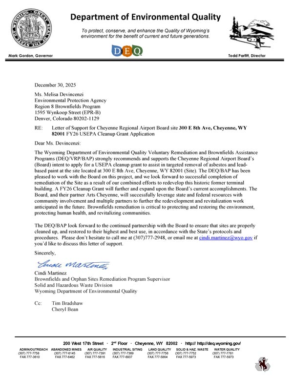 Notice is hereby given that the Cheyenne Regional Airport intends to apply for the 2026 U.S. Environmental Protection Agency (EPA) Brownfields Cleanup Grant.