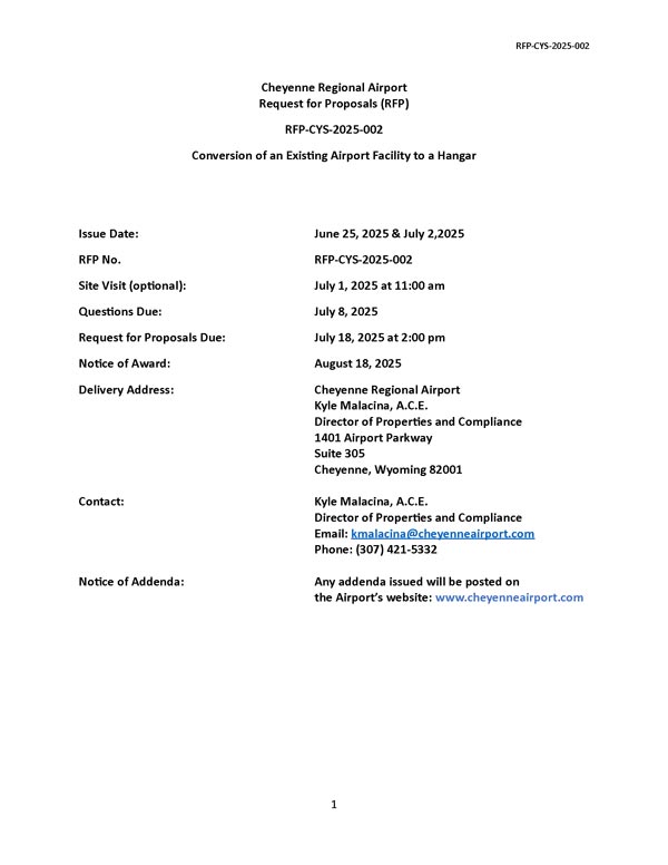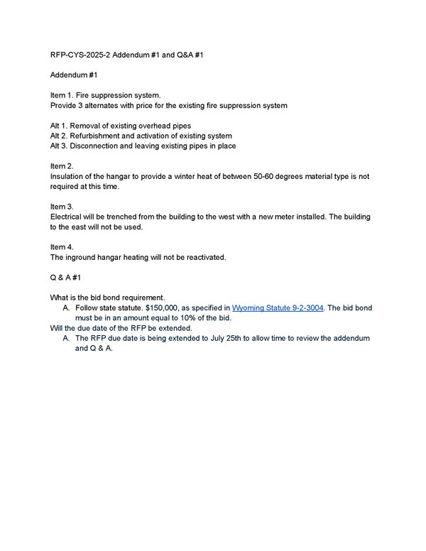 Request for Proposal - RFP-CYS-2025-002 Building 100 ("Hush House") Conversion of an Existing Airport Facility to a Hangar RFP-CYS-2025-002 Addendum #1 and Q&A #1